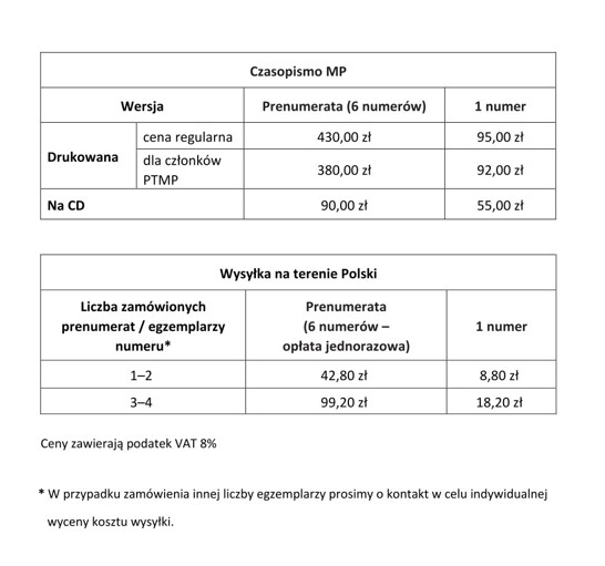 Możliwy jest zakup tylko bieżącego numeru czasopisma. W przypadku zainteresowania numerami archiwalnymi prosimy o kontakt z Oficyną Wydawniczą.